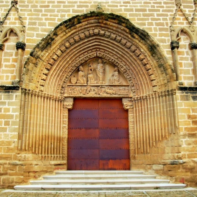 Puerta de entrada de la Iglesia de San Saturnino. Vista de los relieves relijiosos.